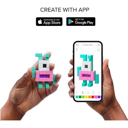 Aplikace PIXIO spolu se stavebnicí PIXIO pomáhá učit se hrou. Pomáhá rozvíjet kreativitu,