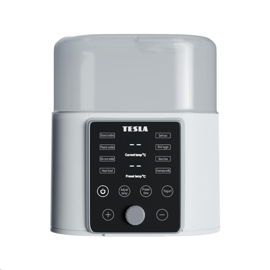 Tesla Multi Sterilizer MS 100 je multifunkční přístroj, který nabízí 7 programů a pomůže v mnoha běžných situacích. Nestíháte? Vytáhněte pokrm z mrazáku, sterilizátor jej rozmrazí. Něco se přihodilo a nemůžete hned servírovat? Nevadí. Teplotu udrží až několik hodin. Dítě už spí a máte vše vysterilizováno? Uvařte si v něm ještě vajíčka k večeři. Nemáte co následující den snídat? Tesla Multi Sterilizer MS 100 vám připraví výživný domácí jogurt.