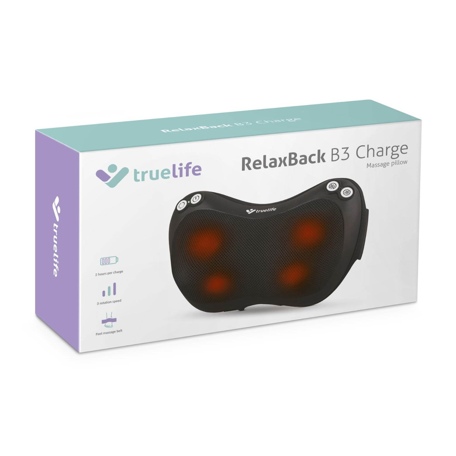 TrueLife RelaxBack B3 Charge - masážní polštář s dobíjecí baterií - Poškozený obal (Komplet)