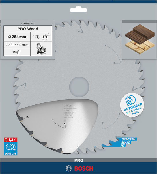 Bosch pilový kotouč PRO Wood cordless pro akumulátorovou okružní pilu, 254 × 2,2 × 30 mm, T24