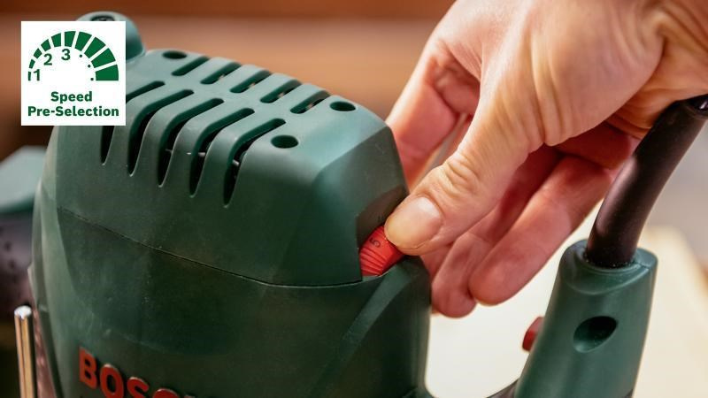 Bosch POF 1200 AE horní frézka, 1200 W, Softgrip, předvolba otáček, aretace vřetena