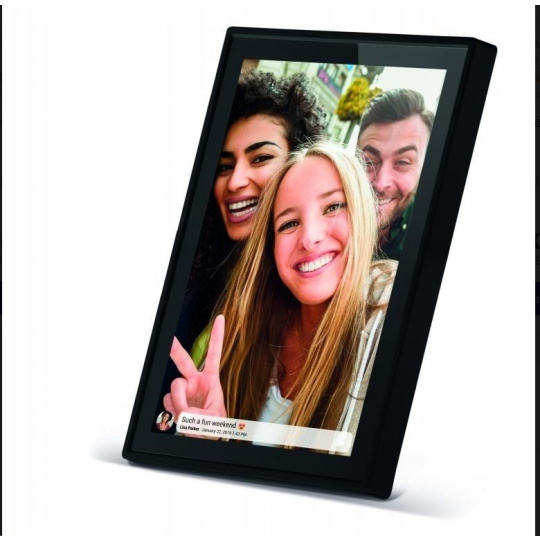 WiFi digitální fotorámeček s úhlopříčkou 15,6", rozlišení 1920x1080px, 16:9 IPS, přehrávání JPEG/MP3/Video, 8GB interní paněť, aplikace FRAMEO (Android/iOS, FREE) pro zasílání obrázků a videí z telefonu, G-senzor pro h/v pozici, micro SDHC slot, micro USB, černý. WLAN modul 802.11 b/g/n, opěrka na stůl, jednoduchá obsluha a nastavení pomocí bezplatné aplikace FRAMEO, ideální pro aktualizaci obsahu a nastavení rámečku z telefonu doma i na cestách, možnost horizontálního i vertikálního provozu, vnitřní paměť pro až 999 obrázků, maximální doba pro video 15s, , micro SD karty do 32GB. Rozměry 405x245x23mm, hmotnost 1390g, síťový zdroj 5V/2A.