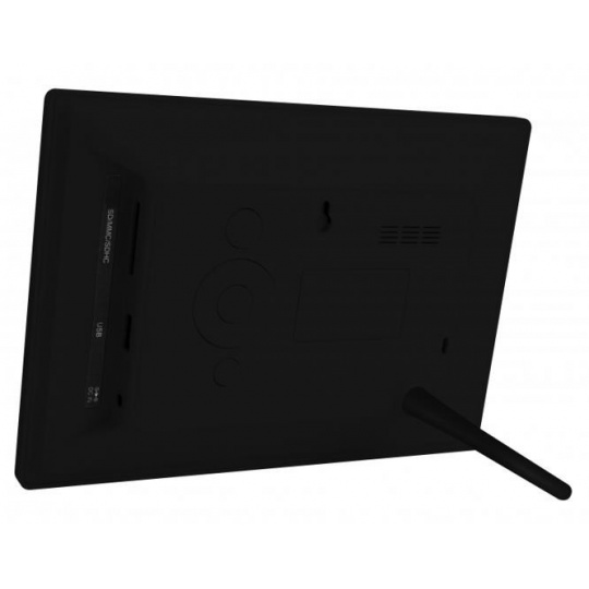 Digitální fotorámeček s úhlopříčkou 7", LED backlight, rozlišení 800x480px, 16:9, prohlížení obrázků ve formátu JPEG, slot SDHC a USB2 flash, OSD menu, bez dálkového ovladače, černý. Funkce: SlideShow (prezentace), náhledy, zoom a otáčení obrázků, budík, hodiny, kalendář. Rozměr: 204x143x26mm, hmotnost 680g/280g, Možnost uchycení na zeď nebo našrobování stojánku. Součástí dodávky síťový zdroj AC/DC 5V/1A..