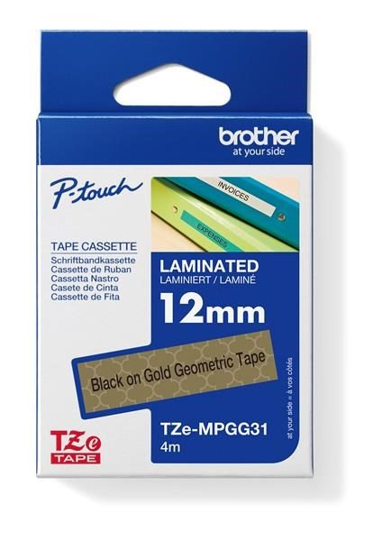 BROTHER Originální kazeta Brother TZe-MPGG31 - černá na zlatém vzoru, šířka 12 mm