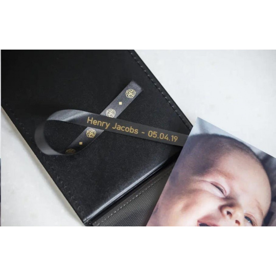 BROTHER TZE-R334 - kazeta TZ šířky 12mm, TEXTILNÍ páska 4m- pro tvorbu dárků - NELEPÍCÍ - ČERNÁ PÁSKA, ZLATÝ POTISK gold