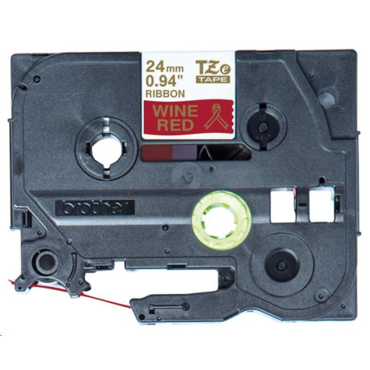 BROTHER TZE-RW54 - kazeta TZ šířky 24mm, TEXTILNÍ páska 4m- pro tvorbu dárků - NELEPÍCÍ -ČERVENÁ PÁSKA ZLATÝ POTISK gold