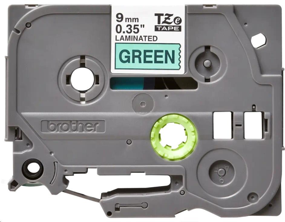BROTHER kazeta TZ šířky 9mm, laminovaná TZE-721, zelená / černá.