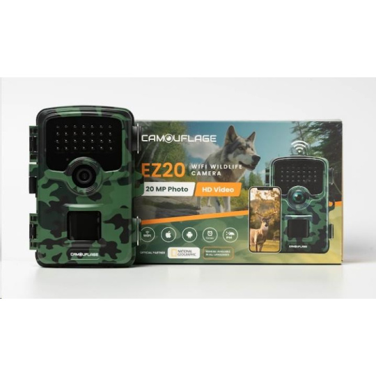 EZ20 Wildlife Camera Specifications: Color: Camouflage Video Resolution: Full-HD (1080P) Megapixel: 20MP File Format: JPG (Photo), AVI/H.264 (Video) Display: 2.4" LCD Screen PIR Sensors: 3 pcs Photo Speed: 0.3 seconds Night Vision Distance: 20 meters Detection Angle: 100° degrees Viewing Angle: 80° degrees Memory: Up t... více