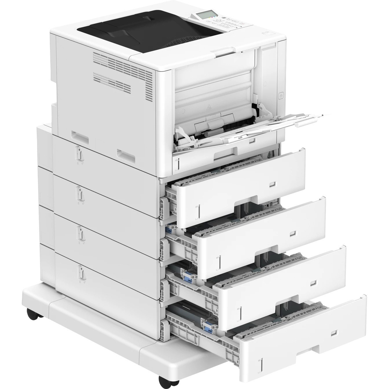 Hlavní jednotka + 4× podavač papíru PF-L1 (Paper Feeder PF-L1) + plochý podstavec BA1 (Plain Pedestal BA1): přibližně 104 kg