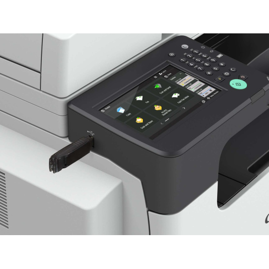 Zabezpečení sítě TLS, IPSec, ověřování IEEE802.1X, SNMP verze 3, funkce brány firewall (filtrování adres IP/MAC), podpora dvou typů sítí (kabelová síť LAN / bezdrátová síť LAN), aktivace/deaktivace (síťové aplikace, vzdálené uživatelské rozhraní, rozhraní USB), oddělení faxu G3 od sítě LAN, oddělení portu USB od sítě LAN, skenování a odesílání – zohlednění možnosti zavirování přijatých e-mailových zpráv