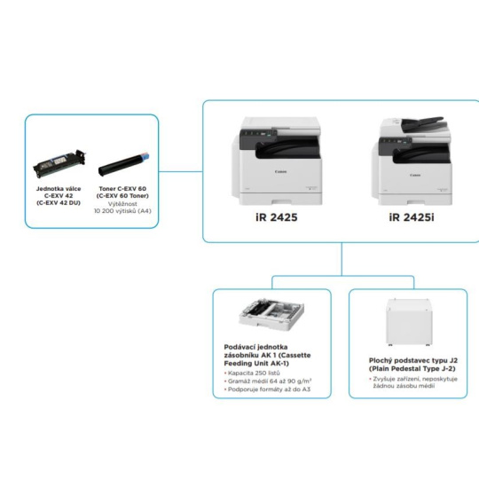 Přídavný podavač papíru AK1 Kapacita papíru: 1× 250 listů (80 g/m2)
