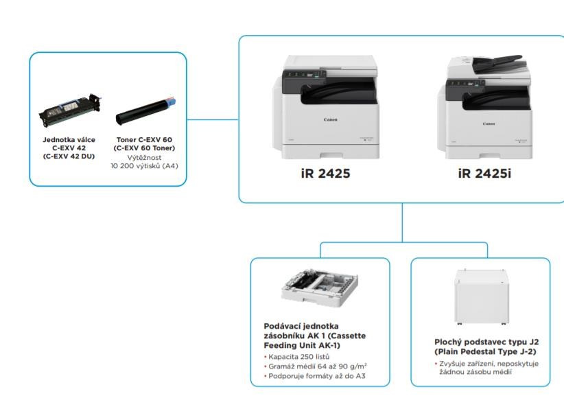 | Rychlost kopírování (černobíle) | až 25 str./min (A4), až 12 str./min (A3), až 11 str./min (A4R) |