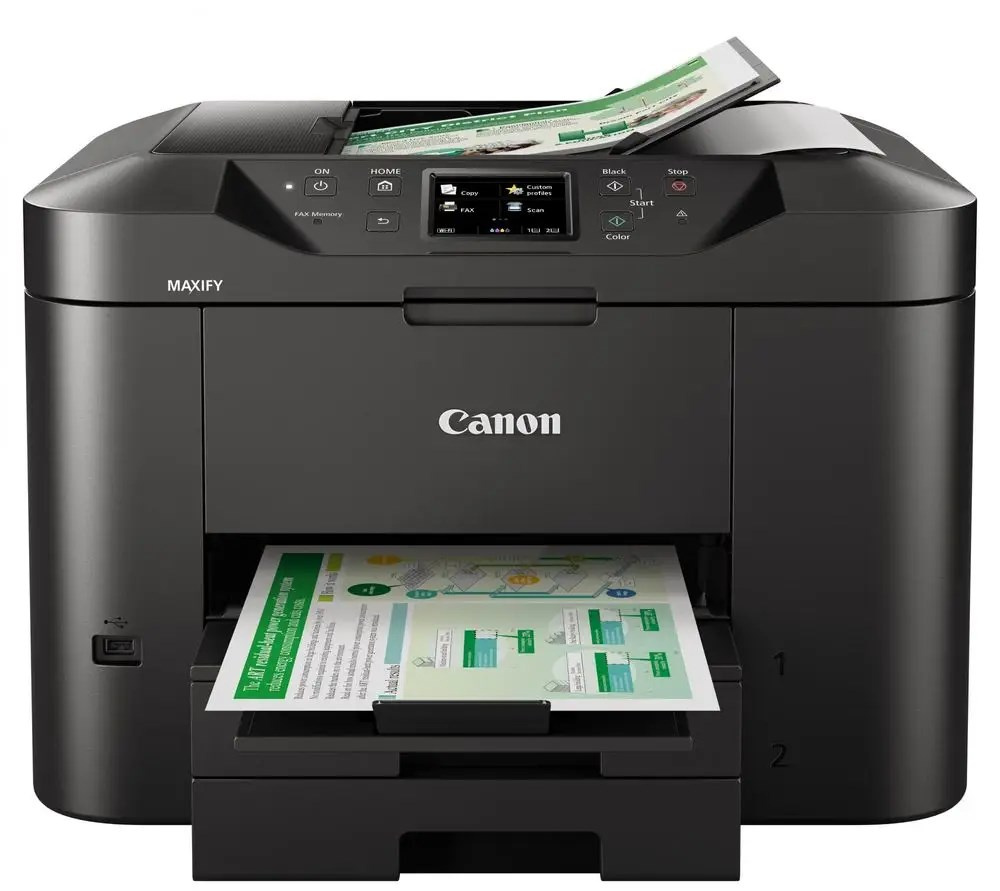 Plně vybavená tiskárna, skener, kopírka a fax navržená do domácí kanceláře. Zařízení Canon řady MAXIFY MB2750 má velký zásobník papíru na 500 listů a automatický podavač dokumentů na 50 listů. Toto zařízení využívá inkousty DRHD odolné vůči zvýrazňovačům a oděru a tiskne syté odstíny černé, živé barvy i ostrý text ve špičkové kvalitě. Vysoká kvalita však není na úkor rychlosti: zařízení tiskne formát A4 vysokou rychlostí 24 obr./min černobíle a 15,5 obr./min barevně, přičemž první strana je hotová už za 6 sekund.