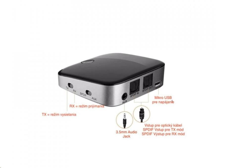 Tento vysílač a přijímač mini Bluetooth lze připojit k širokému okruhu zvukových zařízení, jako jsou MP3, MP4, TV, rádio, autorádio nebo počítač, a umožní jim připojení Bluetooth. Použitím optického zařízení Toslink / SPDIF nebo 3,5 mm audio kabelu vytvoříte několik zvukových zařízení s podporou Bluetooth. Bluetooth přijímá i vysílá, což znamená více možností použití.