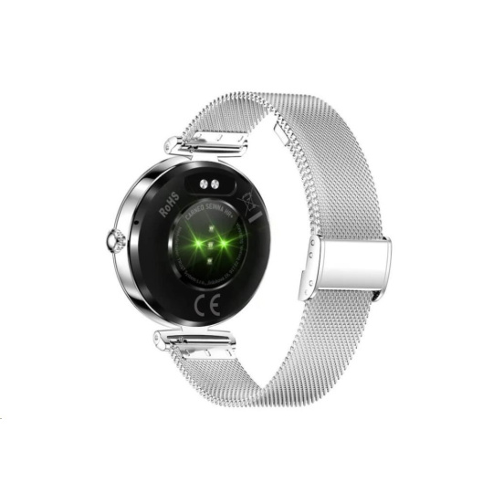 Moderní, luxusní fitness hodinky Carneo Seinna HR+ v elegantním stříbrném provedení disponují SUPER AMOLED displejem, který lze aktivovat jednoduchým otočením ruky. Měří srdeční tep, krevní tlak, okysličení krve, ujetou vzdálenost, spálené kalorie a kvalitu spánku. Jejich součástí je baterie s výdrží cca 4–5 dní. Podle certifikace IP68 jsou odolné vůči vodě a prachu. Hodinky s podporou technologie Bluetooth 5.2 jsou kompatibilní s operačním systémem iOS a Android. Kovový, pletený řemínek je příjemný na dotek a zaručuje komfort po celý den. Řemínek je možné vyměnit za světle šedý silikonový řemínek, který je součástí balení.