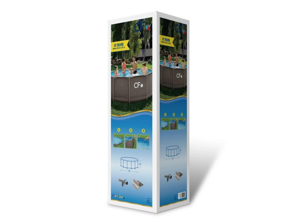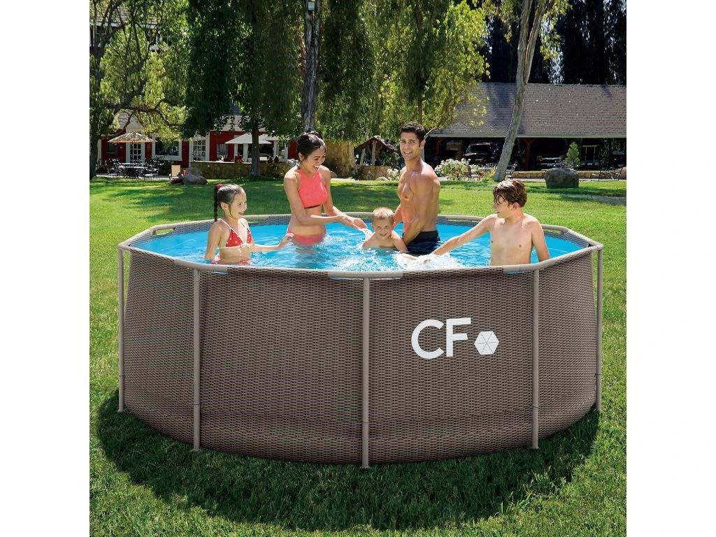 Nadzemní rámový bazén CF FRAME 305 × 107 cm nabízí výjimečnou hloubku vody 107 cm, která je na trhu velmi žádaná a výrazně zvyšuje komfort koupání. Díky pevné ocelové konstrukci a zesílené trojvrstvé PVC fólii poskytuje vysokou stabilitu, dlouhou životnost a bezpečné používání pro celou rodinu. Průměr 305 cm • výška 107 cm • objem 6,7 m3 • pevná ocelová konstrukce • 3vrstvá PVC fólie • ratanový dekor • nadstandardní hloubka vody • montáž bez nářadí • připraven ke koupání za 15–20 minut • průchodky stěnou součástí balení.... více