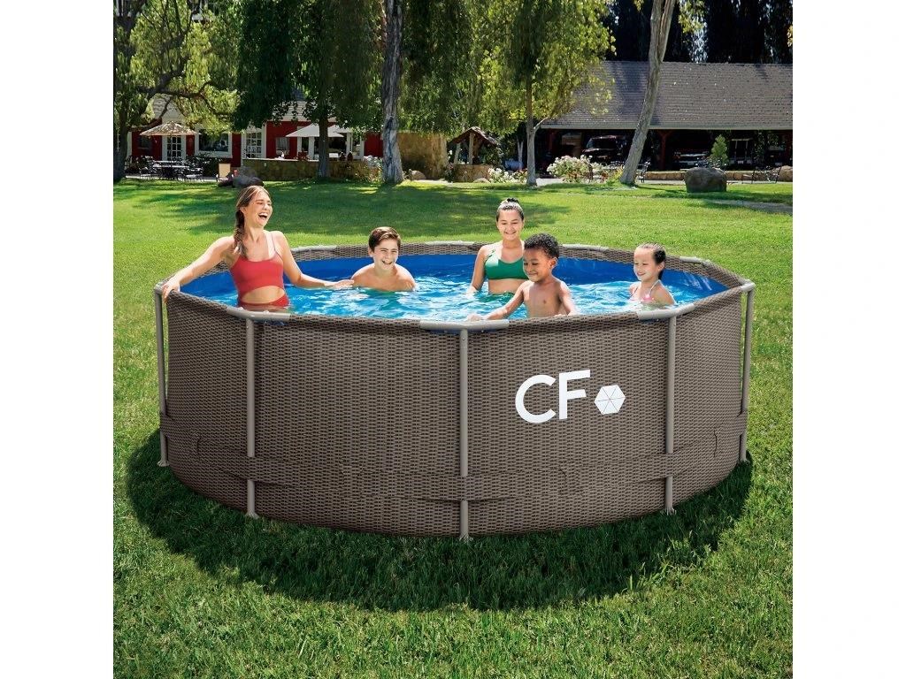 Nadzemní rámový bazén CF FRAME 305 × 91 cm nabízí vyšší stabilitu, větší hloubku vody a delší životnost než běžné samonosné bazény. Díky pevné ocelové konstrukci a zesílené 3vrstvé PVC fólii je ideální pro rodiny, které chtějí bezpečné a stabilní koupání po celé léto. Montáž zvládnete bez nářadí během několika desítek minut. Průměr 305 cm • výška 91 cm • objem 5,8 m3 • pevná ocelová konstrukce • 3vrstvá PVC fólie • ratanový dekor • montáž bez nářadí • připraven ke koupání za 15–20 minut • průchodky stěnou součástí balení.... více