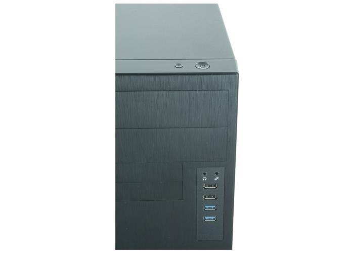 Konektory na předním panelu: 2 x USB 3.0, 2 x USB 2.0, 1 x výstup na sluchátka, 1 x vstup pro mikrofon