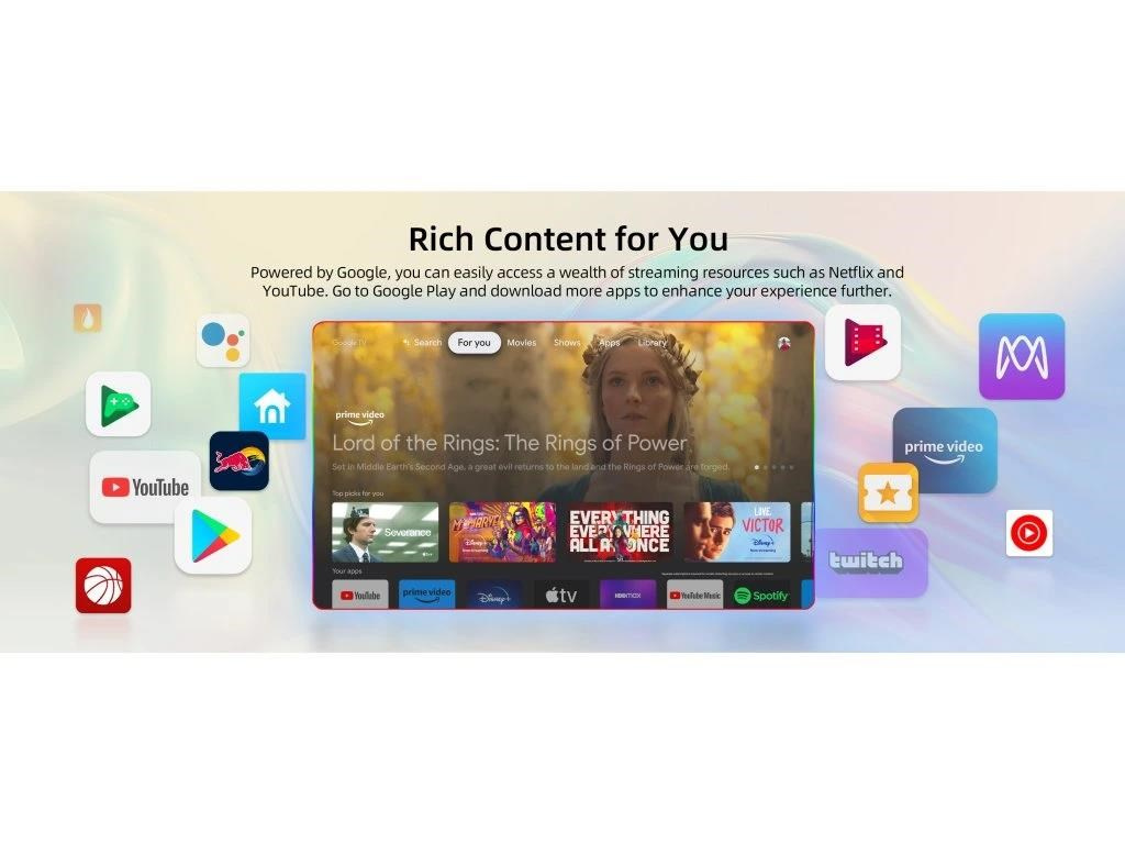 Aplikace YouTube, Netflix, Prime Video, Google Play, O2 TV