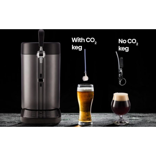 Přepínejte mezi čepováním s CO2 či bez. Extra systém CO2 je vhodný pro běžné 5l soudky s pivem. V případě, že CO2 vypnete, nedostane se do vašeho pití žádný kyslík, a tím prodloužíte životnost nápoje.