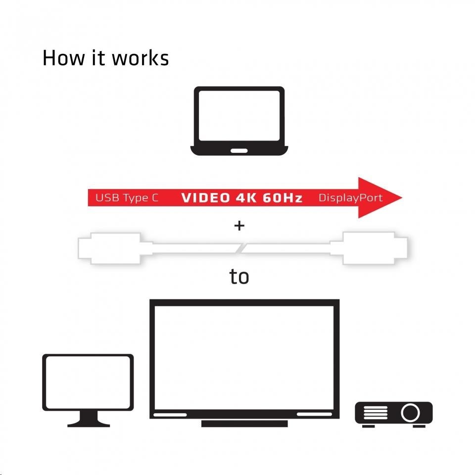 Club3D Adaptér USB 3.1 typ C na DisplayPort 1.2 4K60Hz UHD 1,2m (M/M)