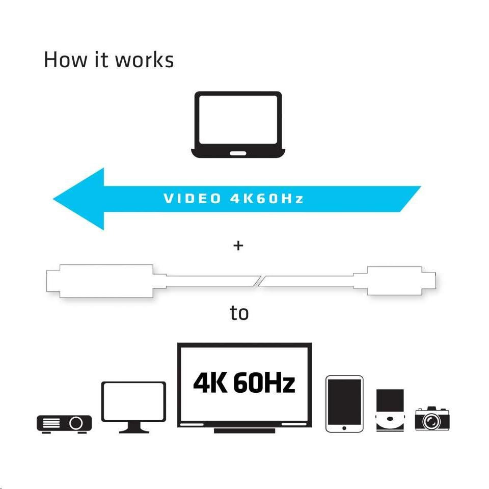 Club3D Kabel aktivní USB typ C na HDMI 2.0 4K60Hz UHD, 1,8m