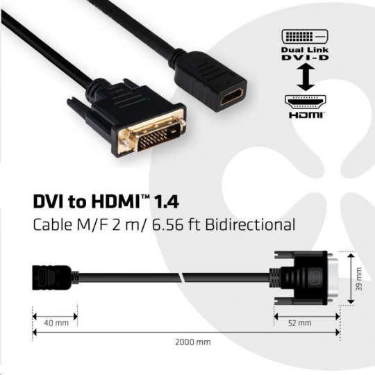 Product Name: DVI to HDMI™ 1.4 Cable M/F 2m/6.56ft Bidirectional
