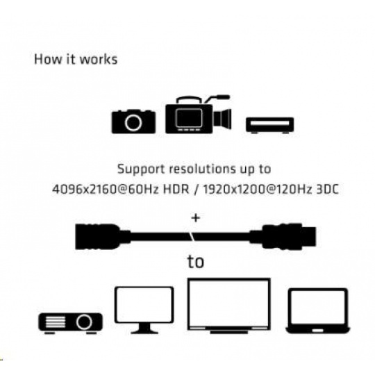 | • High Quality High speed HDMI™ Extension cable, 26 AWG. • Compliant with HDMI™ 1.3 / 1.4 / 2.0 standard • Data transfer rate up to 18 Gbps. • Support resolutions up to 4096x2160@60Hz HDR / 1920x1200@120Hz 3D. * • Product is fully plug & play and does not require external power. * Functionality is also dependent on the HDMI™ M/M cable used. In combination with this CAC-1325 extension cable we advise to use HDMI Male/Male cable of 28AWG Quality, like the Club 3D CAC-1371/CAC-1372 and/or CAC-1373 |