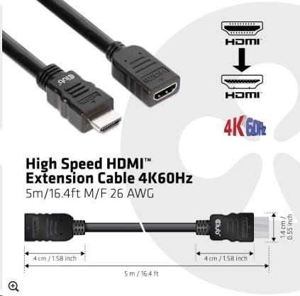 * Functionality is also dependent on the HDMI™ M/M cable used. In combination with this CAC-1325 extension cable we advise to use HDMI Male/Male cable of 28AWG Quality, like the Club 3D CAC-1371/CAC-1372 and/or CAC-1373