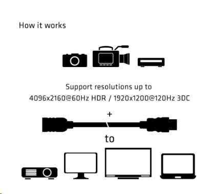 • Support resolutions up to 4096x2160@60Hz HDR / 1920x1200@120Hz 3D. *
