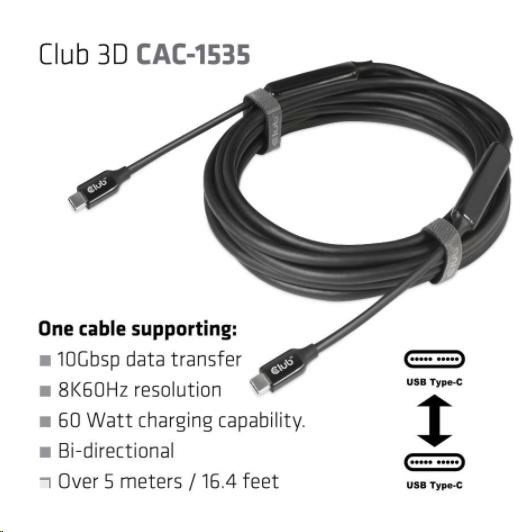 Club3D Kabel USB 3.2 Gen2 Type-C to C Active Bi-directional (M/M) 8K60Hz, 5m