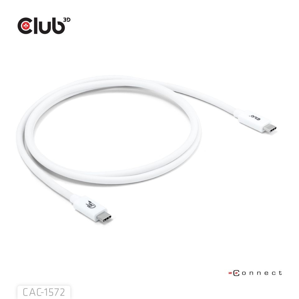 Club3D Kabel USB4 Typ-C, 80Gbps, Certifikovaný kabel, 4K540Hz, 8K240Hz, 16K60Hz, PD 240W, 1.2m, bílá