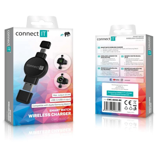 CONNECT IT Bezdrátová nabíječka WatchTravelCharge pro Apple a Samsung Watch, Černá