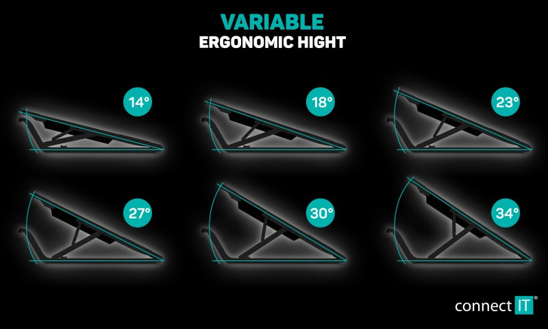 Výšková Polohovatelnost | 14°, 18°, 23°, 27°, 30° a 34° |