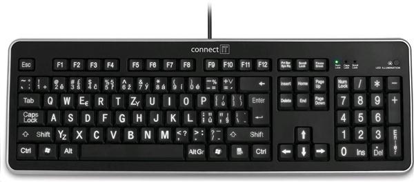 CONNECT IT Klávesnice CI-71 s LED podsvícením a VELKÝM fontem, USB