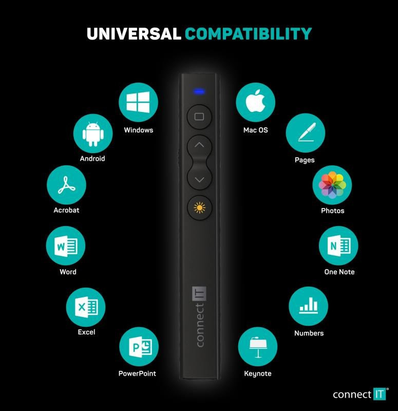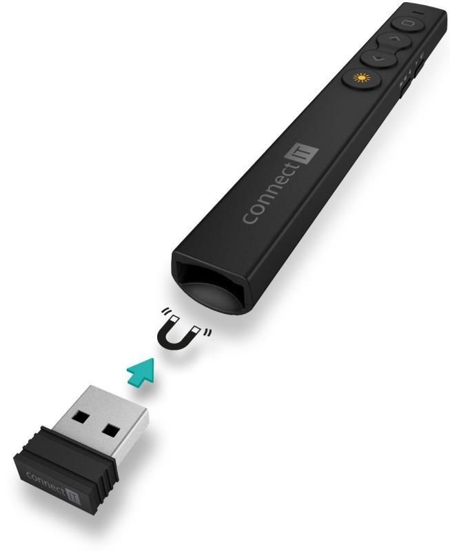 • Úložný prostor ve spodní části prezentéru pro mini USB přijímač ideální při transportu i cestování