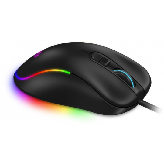 - Podsvícení v 13 barevných módech s možností úplného vypnutí (Single color breathing, Cycle breathing, Static light, Water flow, Wave, Comet Streak, Neon, RGB cycle, Flicker, Static RGB, Pulce, Overwhelming, Trigger, LED OFF)