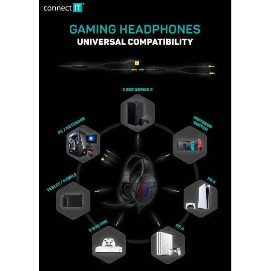 CONNECT IT NEO herní sluchátka s mikrofonem, 1xJack+USB, černá