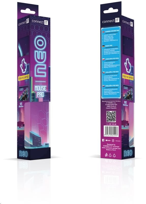 Na kvalitní a stylové podložce CONNECT IT NEO se projeví pozitivní vlastnosti vaší myši. Moderní materiál, ze kterého je podložka vyrobena, poskytuje myši dobře snímatelný podklad i pro nejjemnější laserové snímání. Dvouvrstvý materiál kombinující protiskluznost na spodní straně a ideální vlastnosti pro myši na vrchní straně se výraznou měrou zaslouží o ideální poměr mezi kontrolou nad myší a skluzem.