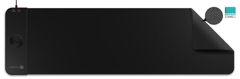 CONNECT IT Podložka pod myš CHARGE, Bezdrátové nabíjení, vel. L (800 × 300 mm), Černá