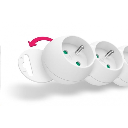 Prodlužovací kabelový přívod na 230V je vybaven hlavním síťovým vypínačem, který při vypnutí zcela odpojí od přívodu elektrické energie všechny zapojené spotřebiče najednou. Extra výbavou je dětská ochrana všech zásuvek – zásuvky jsou přístupné pouze v případě zasunutí obou vidlic najednou, nelze tedy zasunout jednotlivě např. pouze šroubovák nebo pletací jehlici. Díky pootočení zásuvek o 45° je možné používat i objemnější napájecí adaptéry nebo úhlové koncovky. Výsuvné očko v horní části zásuvkového modulu umožňuje zavěšení nebo pevnou instalaci na stěnu (s výhodou využijete např. v dílnách a garážích). Výrobek byl testován a certifikován v evropském testovacím centru a splňuje nejpřísnější bezpečnostní požadavky a nejnovější normy, takže umožňuje zapojení spotřebičů o celkovém příkonu až 2500 W.