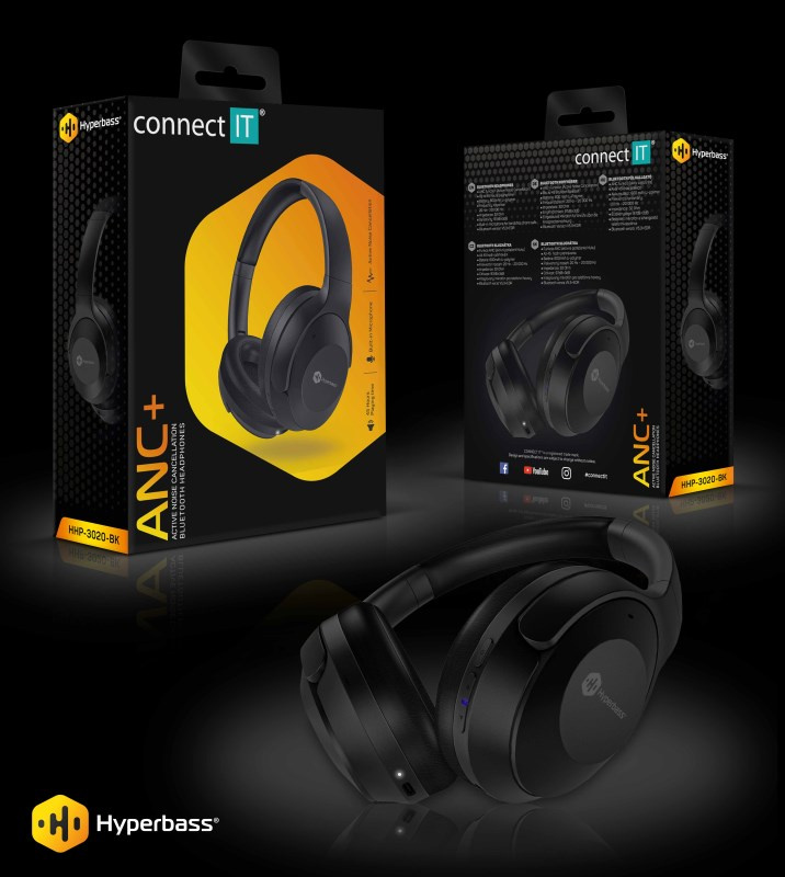 Přenosná bezdrátová Bluetooth sluchátka HHP-3020-BK s výdrží baterie až 45 hodin. Sluchátka disponují ANC funkcí (Active Noise Cancellation), díky které Vás nebude rušit okolí při poslechu hudby, audioknih, podcastů a jiných audio nahrávek.
