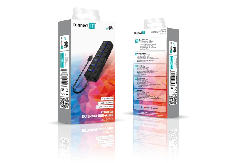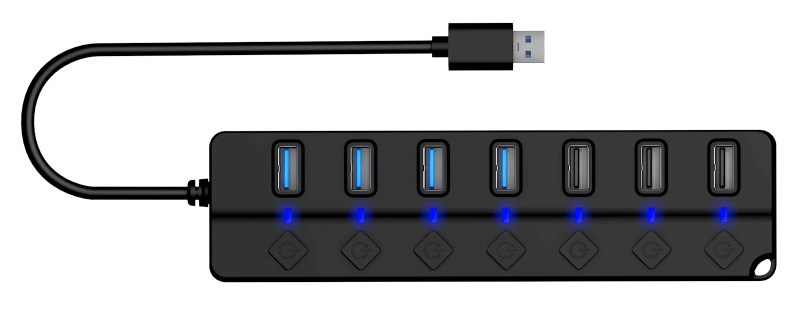Praktický USB hub se 7 USB (4xUSB-A 3.0, 3xUSB-A 2.0) porty s ON/OFF switchem.