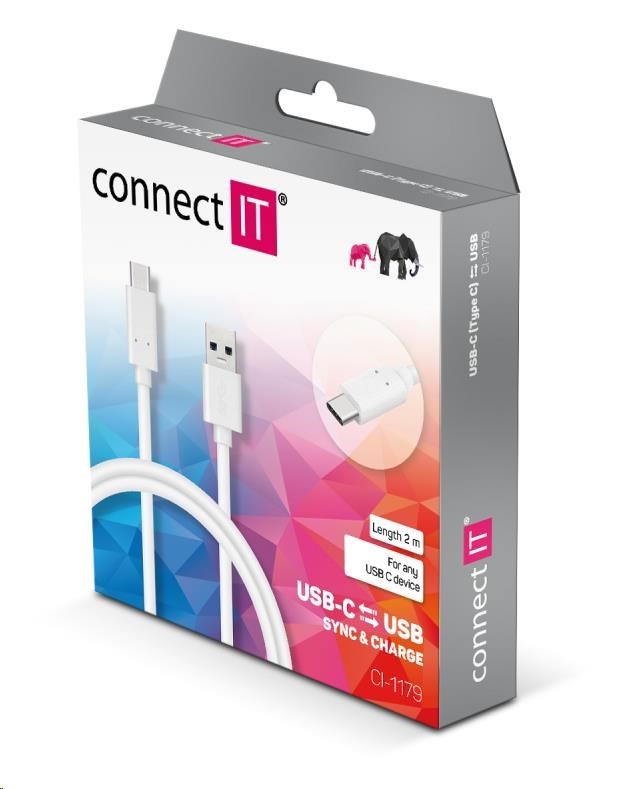 CONNECT IT Wirez USB-C (Type C) -> USB-A, USB 3.1 Gen 1, bílá, 2 m