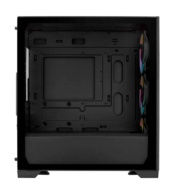 Elite 301 je vybaven velkou sací mřížkou a 3x 120mm ventilátory ARGB, které zajišťují hladký a efektivní chod systému. Plně černý povlak a přiložený kryt PSU umožňuje čisté sestavení, které je vizuálně přitažlivé i funkční.