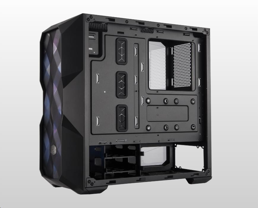 Design skříně E-ATX MasterBox TD500 Mesh dodává osvětlení počítače nový rozměr díky obrysům a tvarům, a poskytuje tak systémům postaveným na zakázku prezentaci, která přesahuje ploché dvourozměrné panely. Boční panel z krystalického tvrzeného skla se vyznačuje designem, který spolupracuje s osvětlením komponent, a je precizně zkonstruován jak pro svou odolnost, tak pro svou estetiku prostřednictvím CNC obrábění.