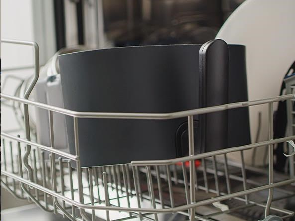 Vyjímatelný fritovací koš a nádoba jsou vyrobeny z odolného, nepřilnavého a zdravotně nezávadného materiálu (BPA a BFOA FREE) a lze je mýt v myčce. Vždy chladná rukojeť a tlačítko pro uvolnění koše eliminují riziko popálení a nechtěného uvolnění.