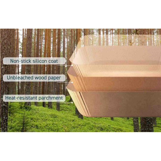 Pečicí papíry COSORI jsou vyrobeny z netoxického a neběleného materiálu v potravinářské kvalitě bez vosku a lze je ohřívat až na 230 °C, nejvyšší teplotu v horkovzdušné fritéze.
