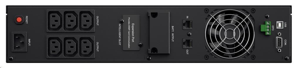 | Dodávka obsahuje | UPS, kolejnice do racku (L+P), rack příchytky, sériový kabel x 1, USB kabel x 1, uživatelská příručka x 1, CD se softwarem pro správu UPS x 1, Průvodce nastavením funkcí x 1, propojovací kabel IEC C13-C14 x2, montážní sada (šrouby, podložky) |