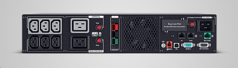 | Dodávka obsahuje | UPS, Kolejnice a Úchyty pro montáž do Racku, sériový, USB, EPO kabel, uživatelská příručka, kabely (2) IEC C13-C14 a (1) IEC C19-C20 |